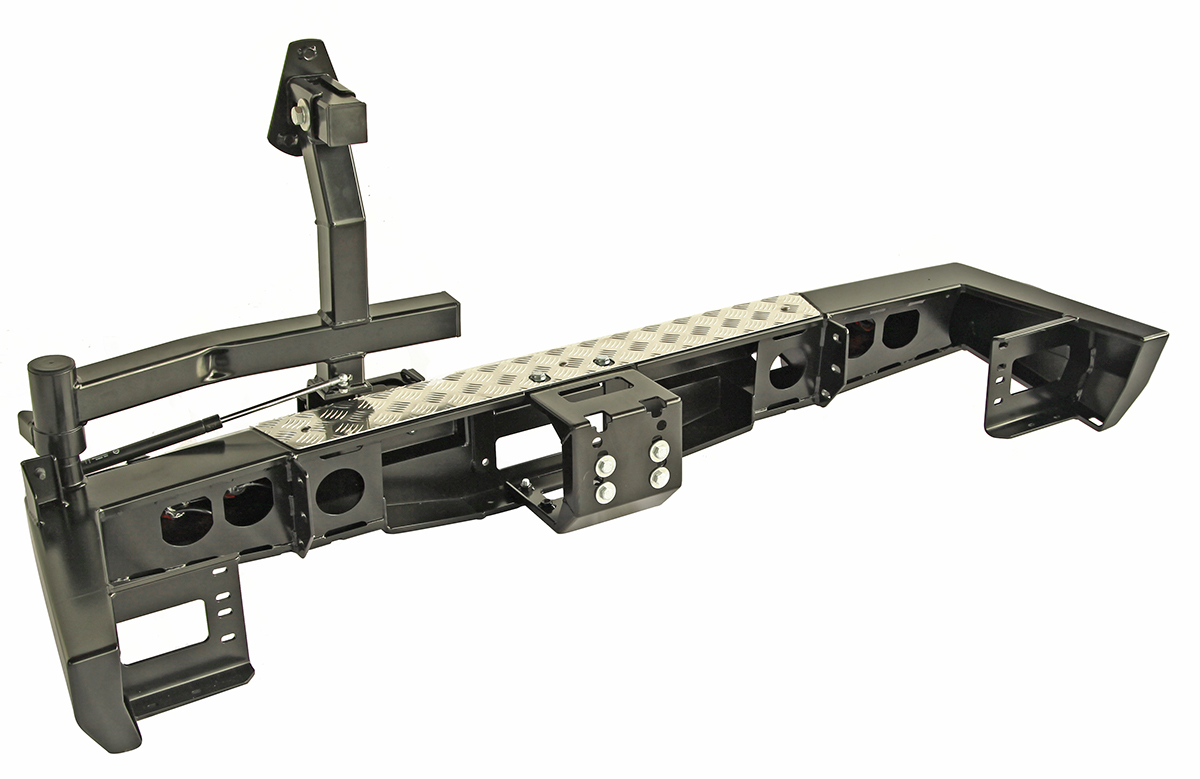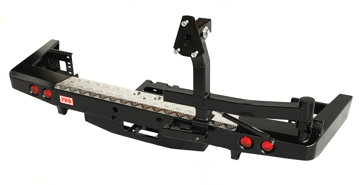 Задний силовой бампер РИФ надежно защитит кузов автомобиля на бездорожье или в городе в случае непредвиденных инцидентов. Бампер оборудован упорами под хай джек и буксирными проушинами для работы с рывковой или буксировочной стропой.